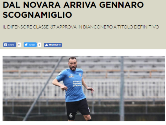 "L'A.C. Cesena comunica in data odierna di aver depositato la documentazione relativa all'acquisto delle prestazioni sportive del calciatore Gennaro Scognamiglio....