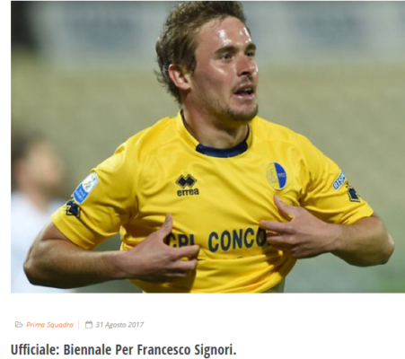 "La società Venezia FC comunica di aver trovato l’accordo con il centrocampista classe ’88 Francesco Signori che vestirà la maglia...
