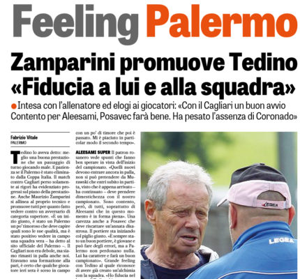 "Tedino lo aveva detto: meglio una buona prestazione cheunpassaggio di turno giocando male. E pazienza se il Palermo è stato...