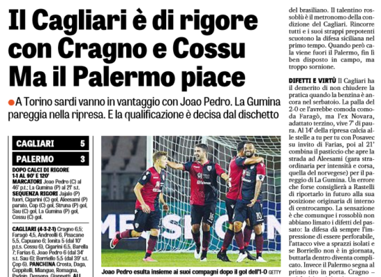 "Avanti Cagliari, ma quanta fatica. Alla squadra di Rastelli servono i calci di rigore per avere la meglio sul Palermo...