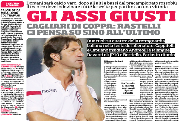 L'edizione odierna de "Il Corriere dello Sport" analizza la situazione in casa Cagliari, in vista del match di Tim Cup...