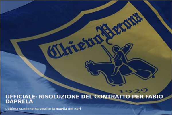 "L'A.C. ChievoVerona comunica la risoluzione consensuale del contratto economico che legava il calciatore Fabio Daprelà al ChievoVerona". Attraverso questo comunica il...