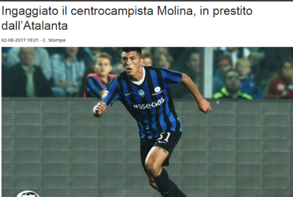 Attraverso una nota sul proprio sito ufficiale, l'Avellino comunica l'ingaggio di Salvatore Andrea Molina dall'Atalanta. Ecco il comunicato: "L’U.S. Avellino comunica...