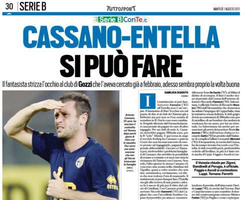 "Il matrimonio si può fare, Antonio Cassano (‘82) all’Entella non è un’utopia. Il fantasista di Bari Vecchia era sul punto...