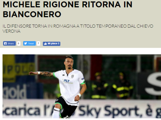 "L'A.C. Cesena comunica in data odierna di aver depositato il contratto relativo all’acquisto a titolo temporaneo, dalla società A.C. Chievo...