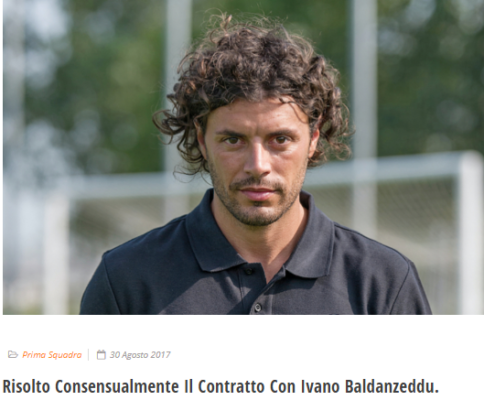 "La società Venezia FC comunica di aver trovato l'accordo con il giocatore Ivano Baldanzeddu, per la risoluzione consensuale del contratto....
