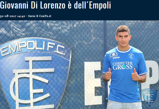 "L'Empoli Fc comunica di aver acquisito a titolo definitivo dal Matera Calcio le prestazioni sportive del calciatore Giovanni Di Lorenzo....