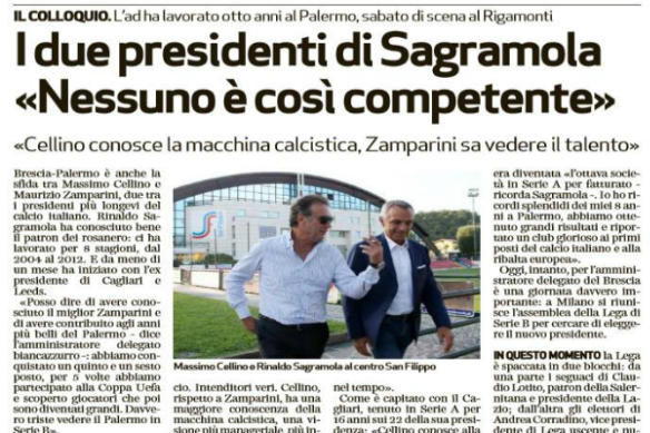 Intervenuto ai microfoni de "Il Giornale di Sicilia", il presidente del Brescia, Massimo Cellino, si è espresso anche su quella...