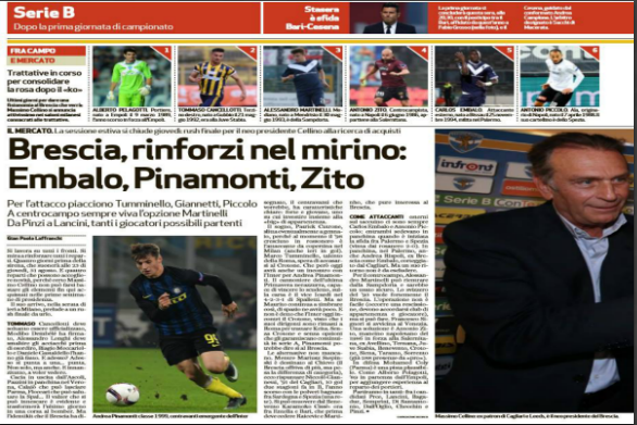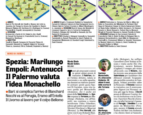 L'edizione odierna de "La Gazzetta dello Sport" riporta tutti i movimenti più rilevanti di calciomercato che riguardano la serie B...