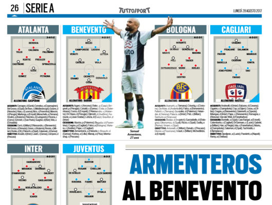 L'edizione odierna di "Tuttosport" riporta tutti i movimenti più rilevanti di calciomercato che riguardano la serie A: "Il Benevento si...