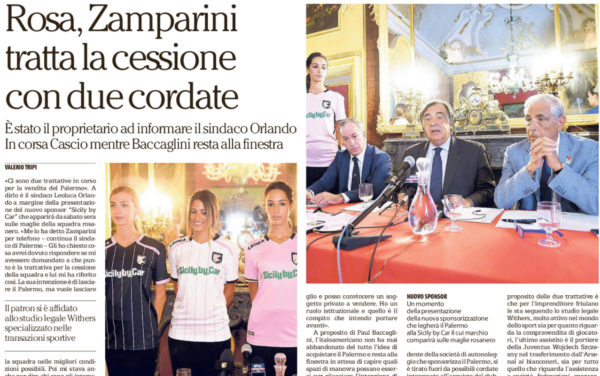Repubblica: “Rosa, Zamparini tratta la cessione con due cordate. È stato il proprietario ad informare il sindaco Orlando. In corsa Cascio mentre Baccaglini resta alla finestra”