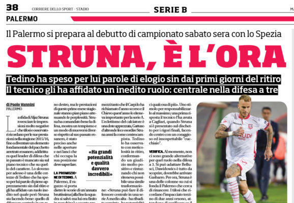 L'edizione odierna de "Il Corriere dello Sport2 riporta alcune delle parole rilasciate da Bruno Tedino, nei confronti di Aljiaz Struna....