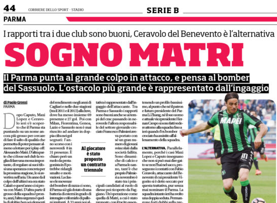 "Dopo Caputo, Maxi Lopez e Ceravolo ieri s'è scoperto che il Parma sta puntando su un nome ancora più grosso...