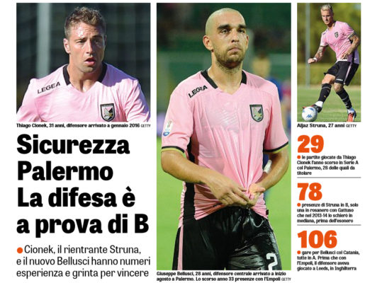 Gazzetta dello Sport: “Sicurezza Palermo. La difesa è a prova di B”