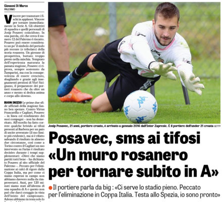 «Ho visto giocare i rosanero contro il Cagliari ed effettivamente mi hanno colpito positivamente, anche perché vi sono tanti giocatori...
