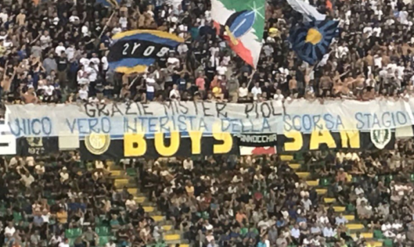 Inter, striscione in curva: “Grazie Pioli, unico vero interista della scorsa stagione” (FOTO)