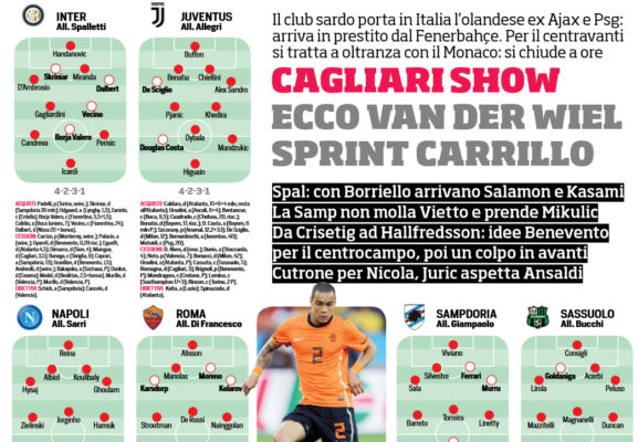 "Cagliari scatenato. Emissari del club di Giulini sono volati a Istanbul per chiudere Gregory Van Der Wiel (29): il terzino...