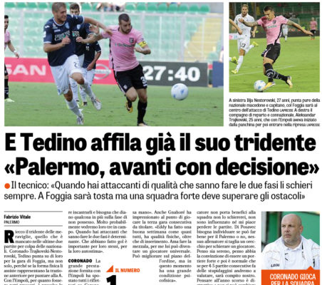"Riecco il tridente delle meraviglie, quello cheè mancato nelle ultime due partite per colpa delle nazionali. Coronado-Trajkovski-Nestorovski, Tedino punta su...