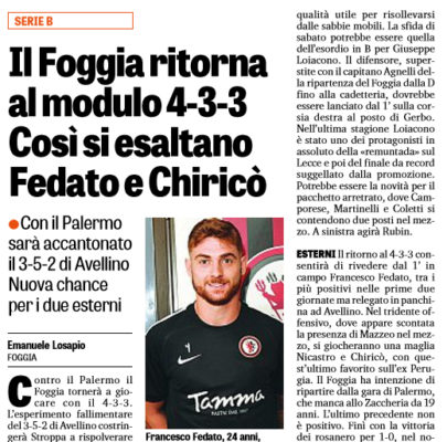 L'edizione odierna de "La Gazzetta dello Sport" ha deciso di parlare delle ultime notizie che riguardano il Foggia, prossimo avversario...