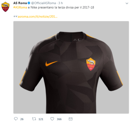 Tramite il proprio profilo Twitter la Roma ha pubblicato la fotografia della terza maglia per la stagione 2017/2018. Ecco di...