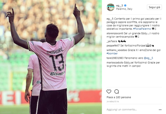 Il centrocampista del Palermo Eddy Gnahoré, è stato protagonista con il momentaneo gol del 3-2 e poi ha causato il...