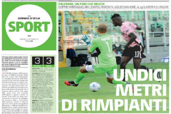 L'edizione odierna de "Il Giornale di Sicilia" ha analizzato il match pareggiato ieri dal Palermo contro l'Empoli. Ecco quanto si...