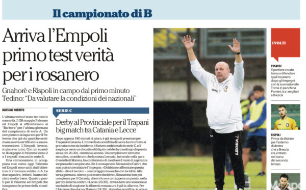 "Questo è il primo, vero test di crescita per il Palermo. L'Empoli appare avversario con caratteristiche e qualità diverse da...