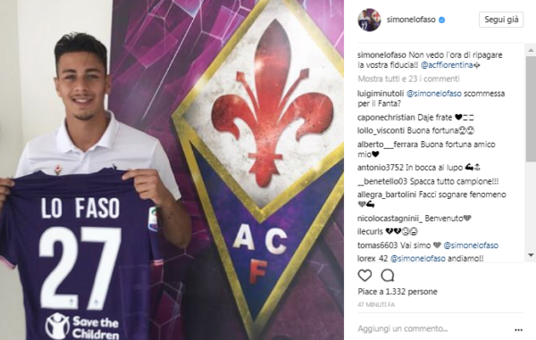 Il nuovo calciatore della Fiorentina Simone Lo Faso, tramite il proprio profilo Instagram ha postato una foto che lo vede...
