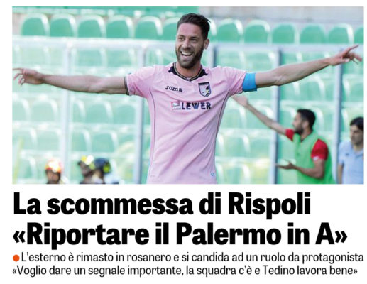 "Non vivedirimpianti. Il mercato è alle spalle, davanti c’è soltanto il Palermo. Ha le idee chiare Andrea Rispoli: la Serie...