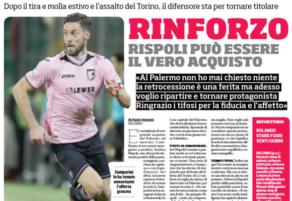 "E' considerato il vero grande acquisto del Palermo sul mercato. L'ambiente si era ormai rassegnato a perdere Andrea Rispoli, uno...
