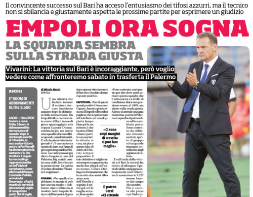 "Una vittoria che ha fatto tornare il sorriso e riacceso l'ambiente azzurro dopo le delusioni della retrocessioni. Un Empoli bello...