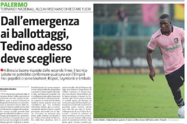L'edizione odierna de "Il Giornale di Sicilia" analizza le scelte che Bruno Tedino è chiamato a fare in vista del...
