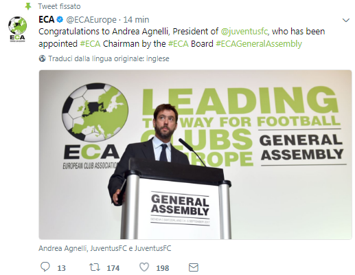Il presidente della Juventus Andrea Agnelli è stato nominato presidente dell'ECA (European Club Association). L'ECA è un organismo che rappresenta le...