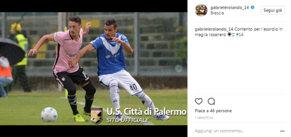 Il difensore Gabriele Rolando, nella gara di ieri contro il Brescia, ha fatto il suo esordio con la maglia rosanero....