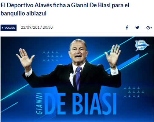 Il Deportivo Alaves annuncia tramite il proprio sito ufficiale l'arrivo dell'ex Ct dell'Albania Gianni De Biasi. De Biasi guiderà il...