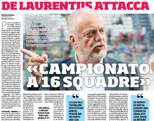 "Pronto, buongiorno è la sveglia: «Serie A a 16, io ritoccherei il numero di squadre». Parla Aurelio De Laurentiis, e...