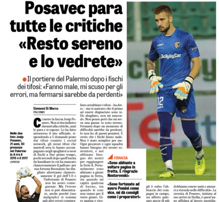 "Ci mette la faccia Josip Posavec. Non si tira indietro davanti alla critiche,anzi le para e si espone. Lo ha...