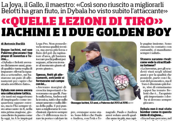 "Beppe Iachini, nel suo Palermo giocavano i top player di Juventus e Torino... «Dybala e Belotti avevano diciannove anni, grandi...