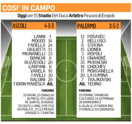 L'edizione odierna de "Il Giornale di Sicilia" ha stilato le probabili formazioni del match in programma oggi tra Ascoli e...