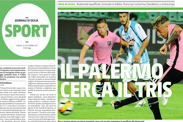 L'edizione odierna de "Il Giornale di Sicilia" ha analizzato quello che sarà il match di oggi tra Ascoli e Palermo:...