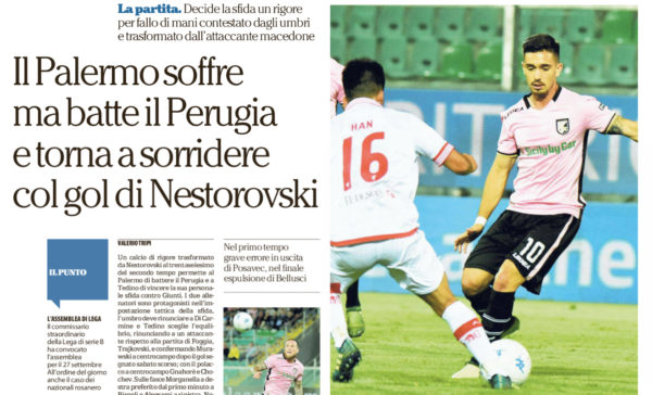 "Un calcio di rigore trasformato da Nestorovski al trentaseiesimo del secondo tempo permette al Palermo di battere il Perugia e...