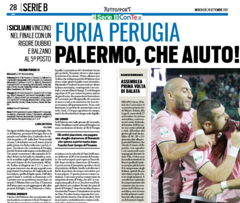 Tuttosport: “Furia Perugia. Palermo, che aiuto!”