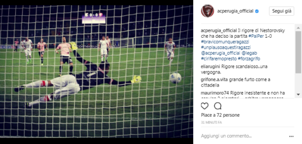 Tramite il proprio profilo Instagram il Perugia calcio ha pubblicato una foto che vede il rosanero Nestorovski calciare il rigore...