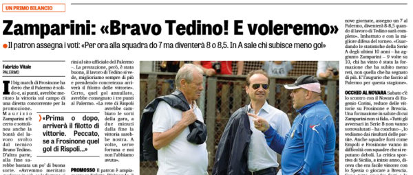 "Il big match di Frosinone ha detto che il Palermo è solido e, ai punti, avrebbe meritato la vittoria sul...