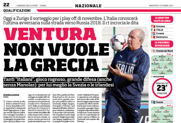 "Non c’è solo interesse per sapere chi sarà l’avversaria dell’Italia. C’è pure curiosità per conoscere dove gli azzurri giocheranno la...