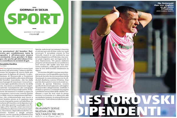 L'edizione odierna de "Il Giornale di Sicilia" dedica un pezzo a Ilija Nestorovski. Ecco quanto si legge: "Tra rientri traumatici...