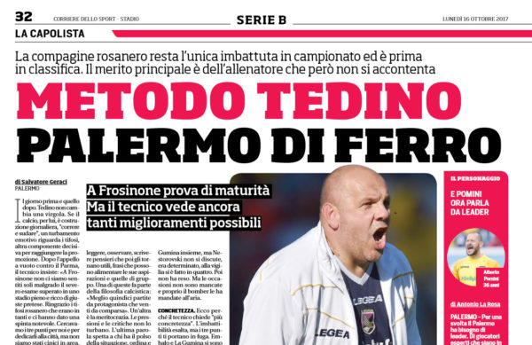 L'edizione odierna de "La Gazzetta dello Sport" ha analizzato l'attuale situazione dei rosanero, l'unica squadra della B ancora imbattuta. Ecco...