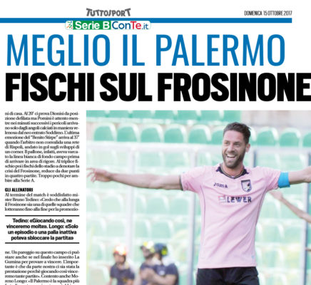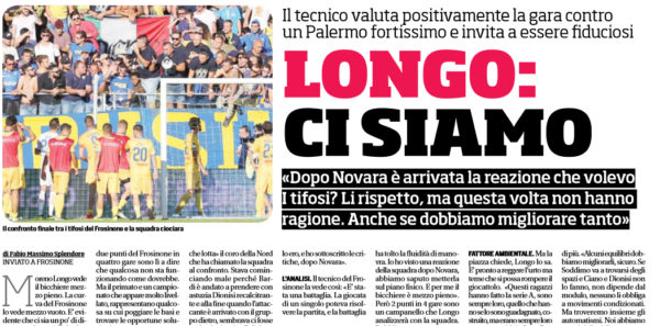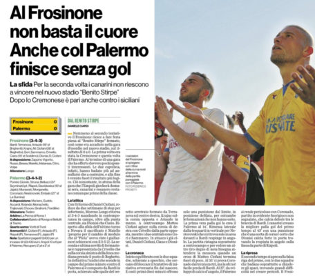 "Il Frosinone fermato sul pari dalla corazzata Palermo". Questo titola l'edizione odierna di "Ciociaria Oggi", il quotidiano di Frosinone poi...