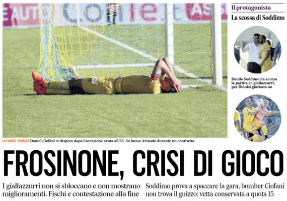 "Sos Frosinone. L’agognato riscatto post Novara rimane nel cassetto dei sogni. Dal big match contro il Palermo, finito a reti...