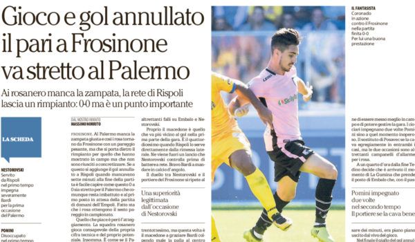 Repubblica: “Nestorovski sbaglia. Struna… – Le pagelle di Frosinone-Palermo”